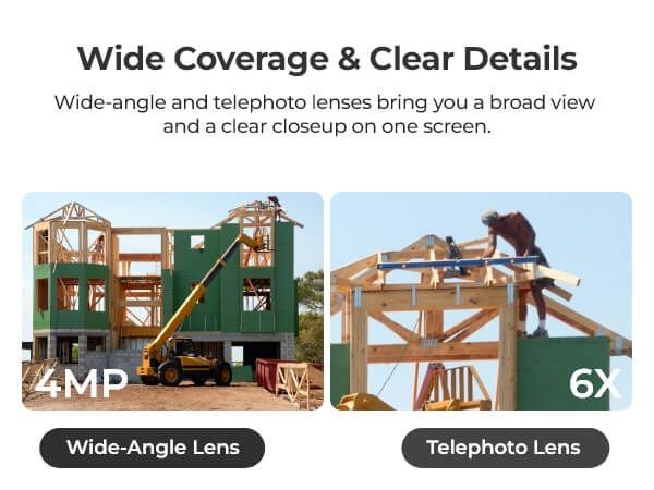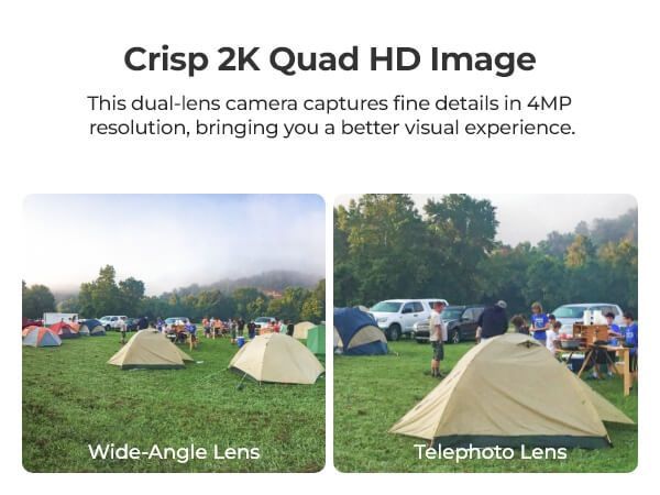 • With 4K - 8MP high resolution image, this dual-lens camera can capture sharper and finer details, bringing you a better visual experience